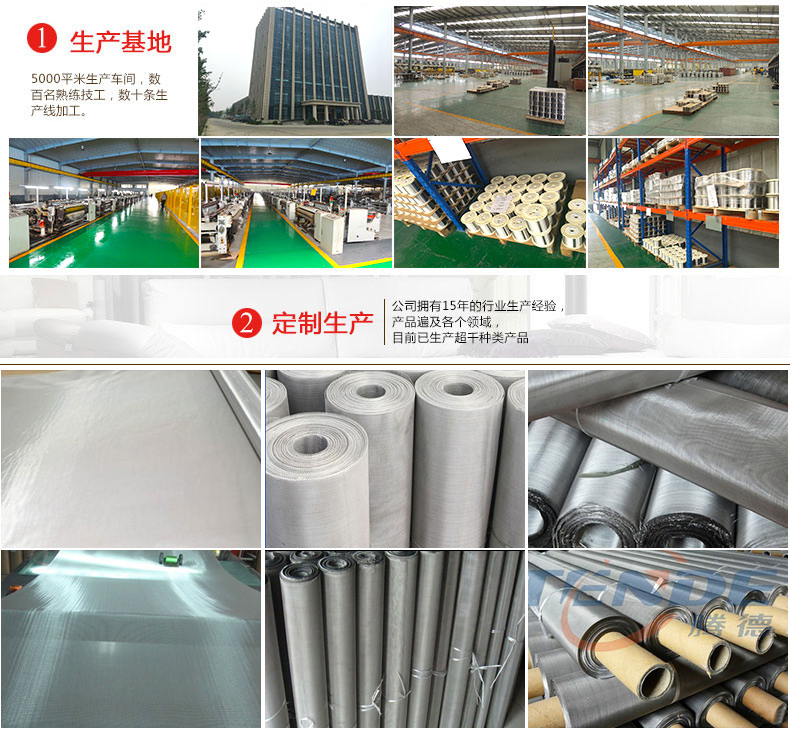 河北腾德金属丝网制品有限公司,我公司现在主要是为客户提供各种丝网 筛网 过滤网产品技术支持、为使用单位新产品研发定制,我们可以提供专业优质的丝网产品及解决方案 ,我们25年专注于丝网产品的生产及研发,公司占地100亩 拥有国内外生产设备580多台套 常规规格大量现货供应 免费提供样品,我的联系电话以上产品可根据客户要求生产加工定做!